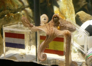 Известный на весь мир осьминог Пауль сделал свою ставку на финал чемпионата мира по футболу. По мнению Пауля, мировое первенство выиграет команда Испании. Напомним, что ранее осьминог сделал прогноз на матч за третье место. Пауль решил, что в матче Уругвай – Германия победят немцы. Стоит отметить, что осьминог очень долго не мог принять решение. Он сомневался и весь процесс занял около 15 минут. Также добавим, что никаких серьезных мер по охране этого мероприятия предпринято не было. Напомним, что пока Пауль угадал абсолютно все исходы матчей с участием сборной Германии на ЧМ. |