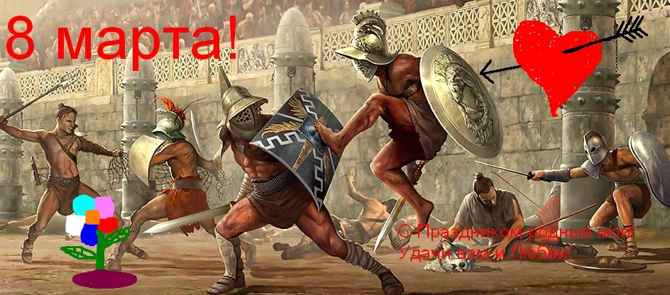 Совсем скоро наступит 8 Марта - праздник, посвященный всем прекрасным женщинам. Император знает, что среди ланист есть и отважные женщины, отправляющие в бои своих гладиаторов, и их нельзя оставить без внимания. Эти женщины особенные и поздравлять их нужно по-особенному. В связи с этим Император повелевает ланистам создать поздравительное изображение, посвященное этим необыкновенным девушкам. Свои работы необходимо размещать в этой теме до 18 марта включительно. Авторы лучших работ получат от Великого Правителя следующие нагрды: 1 место: 50 бонусов; 2 место: 30 бонусов; 3 место: 20 бонусов. Обсуждения конкурса проходит в другой теме. |