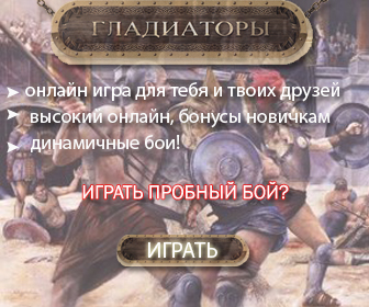 Император объявляет о запуске нового конкурса, посвященного игре "Гладиаторы". Чтобы принять в нем участие, необходимо создать баннер известной нам с вами игры "Гладиаторы". Анимированные баннеры будут выделены в отдельную номинацию. Условия конкурса: - свои работы необходимо размещать в этой теме. - допустимый формат: *.jpg, *.png, *.gif, *.swf. - последний день приема работ: 24 июля. - допустимые размеры баннеров: 120x600, 160x600, 180x150, 300x250, 336x280, 240x400, 250x250, 468x60, 234x60, 120x240, 120x90, 120x60, 125x125 пикселей. Победители среди авторов анимированных работ получат следующие награды: 1 место: 50 бонусов; 2 место: 40 бонусов; 3 место: 30 бонусов. Победители среди авторов работ без анимации получат следующие призы: 1 место: 40 бонусов; 2 место: 30 бонусов; 3 место: 20 бонусов. Удачи! |