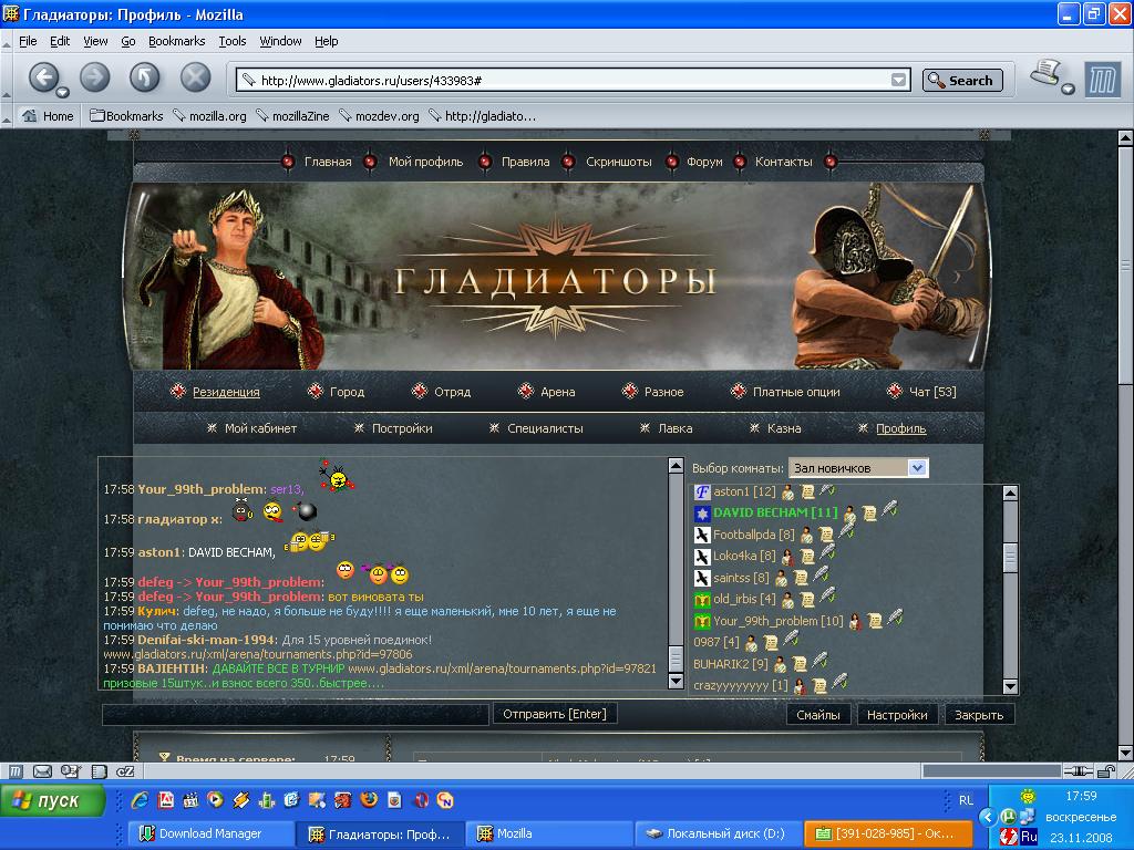 Это слова АНТОХХХА. От всей души приветствую высшее Римское общество! Ушел в реал...с радостью сообщаю что тут у меня дела лучше некуда, ура. Кого хотелось бы вспомнить...да много кого.Писать всех адский труд. Да я всех и не вспомню, многие ушли ещё до моего появления в игре, но почтение выскажу и им.Поехали Суд - просто спасибо за всё, много грязи пропустили через вас. Эдилы - На ваших плечах прошлое настоящее и будущее проэкта. Цензоры - Слава блюстителям порядка в чате,выручали! Елис1302 - респект рекордсменам по предам)). Так же хочу вспомнить и поблагодарить всех с кем пересекался) Мои друзья,согильдяи, учителя, наставники в отделе, коллеги, знакомые, враги, завистники, ученики...ОГРОМНОЕ вам спасибо за кучу эмоций которую вы мне подарили.Будь то положительные или отрицательные, это опыт. Опыт общения с самыми разными людьми. И удовольствие от него. Всем спасибо, всем удачи. Кто ушел - слава Кто остался - респект. Полюби рандом и рандом полюбит тебя. АНТОХХХА. Передаю АНТОХХХе респект за то, что вспомнил)))))))))))) -------------------- Сайт самой славной гильдии проекта) http://flood-glad.ucoz.ru/