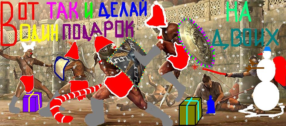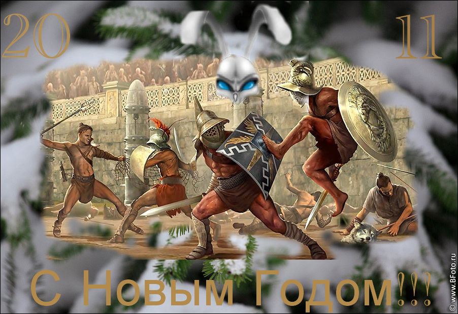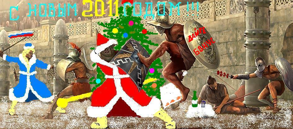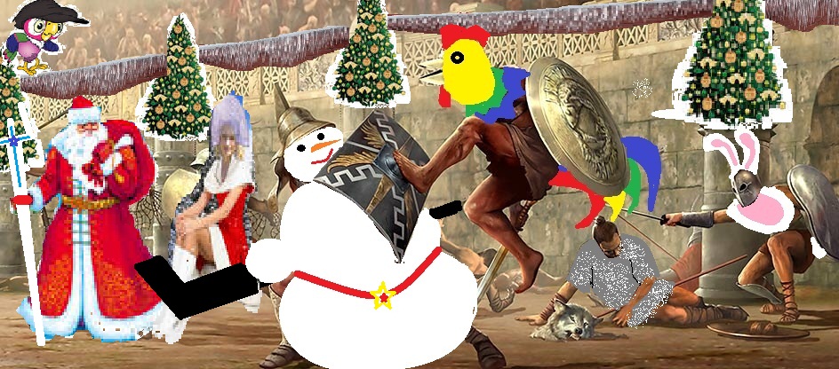 Уважаемые ланисты! Близится новый год, и Император объявляет о новом конкурсе. Всем жителям Рима предлагается оформить заглавное изображение сайта "Гладиаторы" в новогоднем стиле. Щелкните на изображении, находящемся выше, затем правой кнопкой нажмите на нем и выберите "Сохранить изображение как..." и затем отредактируйте его на свой вкус так, чтобы чувствовалось настроение приближающегося Нового года. Свой вариант изображения выложите в этой теме до 28 декабря. Самые талантливые ланисты получат ценные награды: 1 место: 35 бонусов; 2 место: 30 бонусов; 3 место: 25 бонусов. Помимо этого, Славный правитель наградит и других авторов качественных работ. Желаем удачи! Обсуждение конкурса находится в другой теме. С Новым Годом, с новым счастьем! |