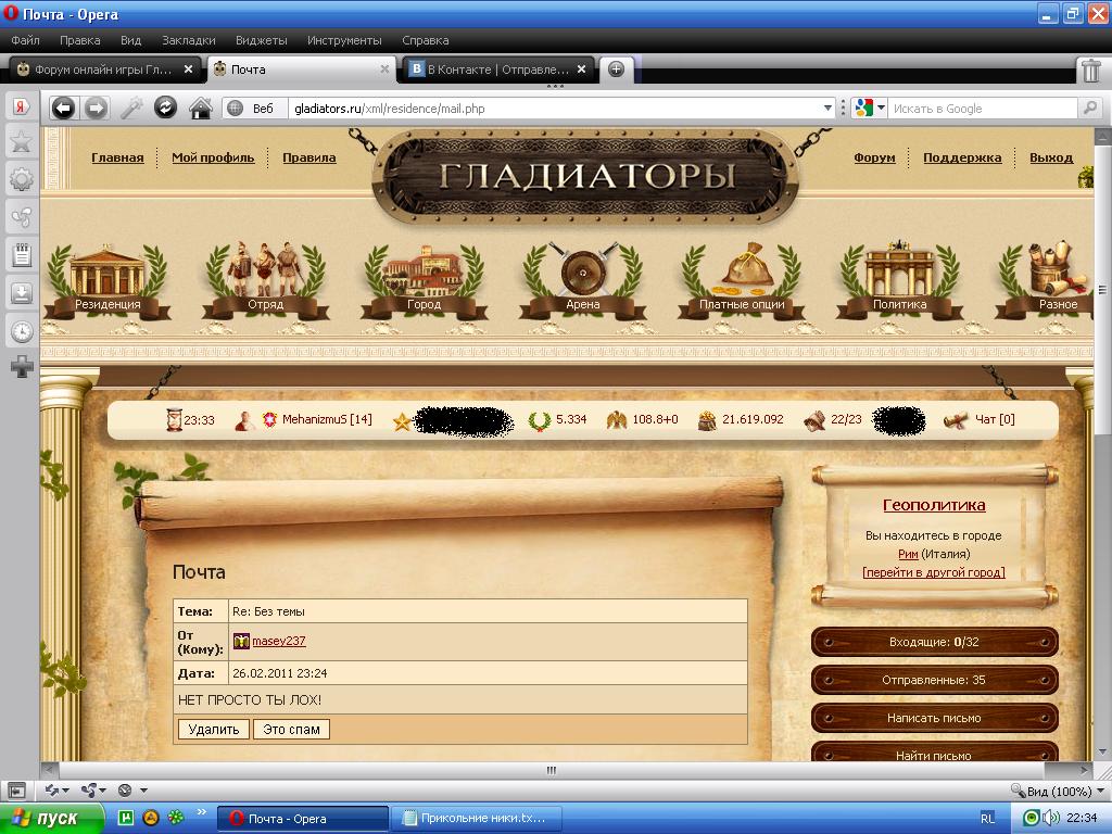 ник: masey237 сылка: http://gladiators.ru/users/1158073 скрин!!! -------------------- Я здесь значит всьо будет...