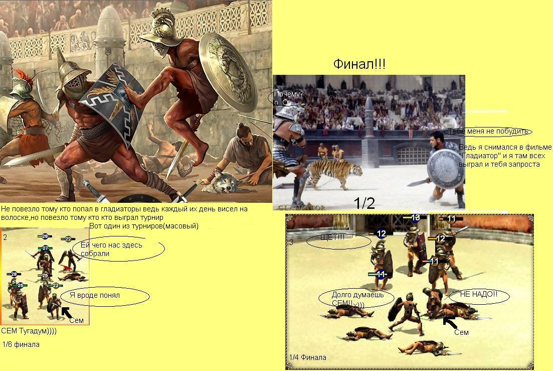 С сегодняшнего дня Император предлагает всем ланистам, которые хотят блеснуть своими творческими способностями, сделать мини-комикс (не более 8 кадров) на тему гладиаторских турниров.